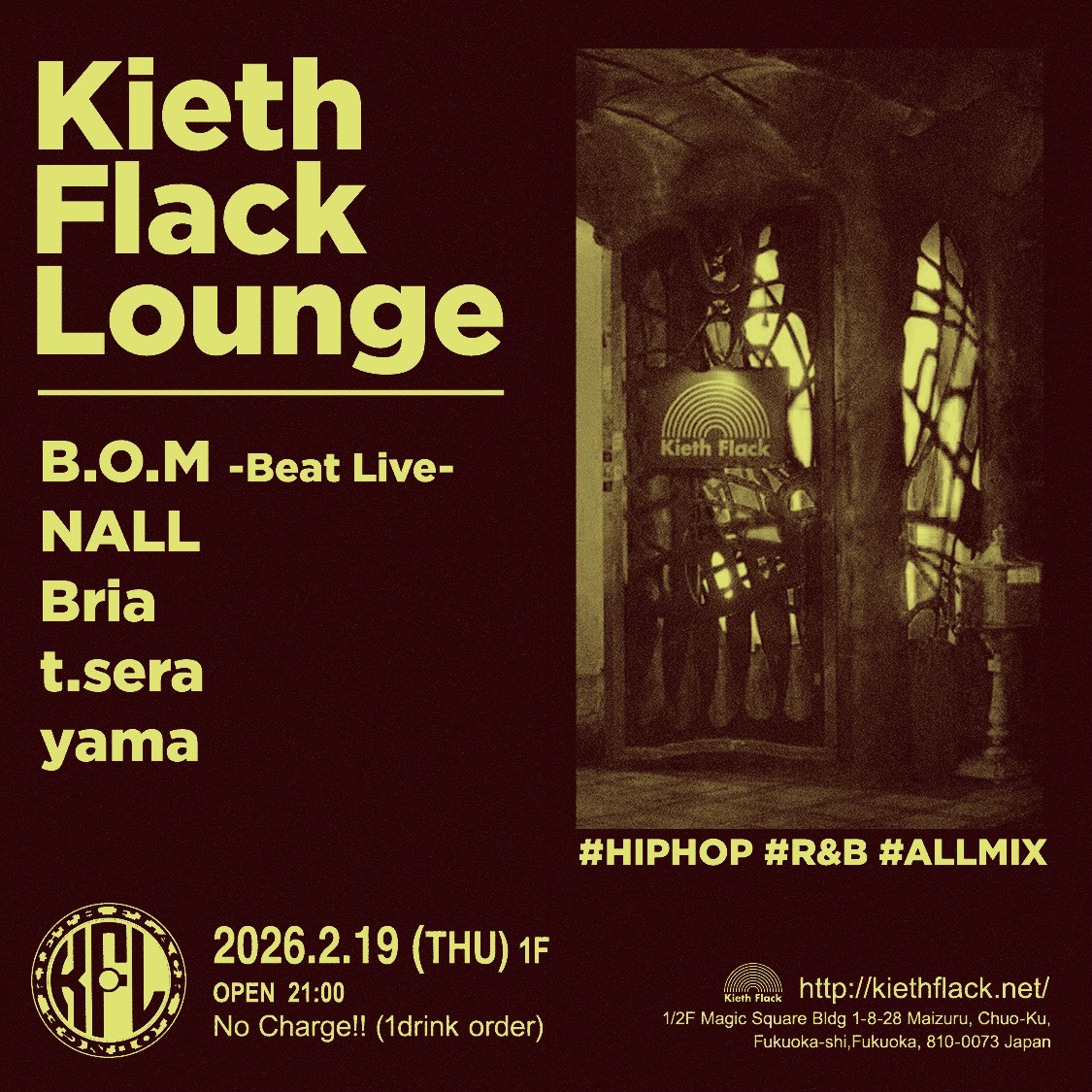 一際異彩を放つマジックスクエアビルの1/2Fにあるクラブ・ライブハウス Kieth Flack(キースフラック)。